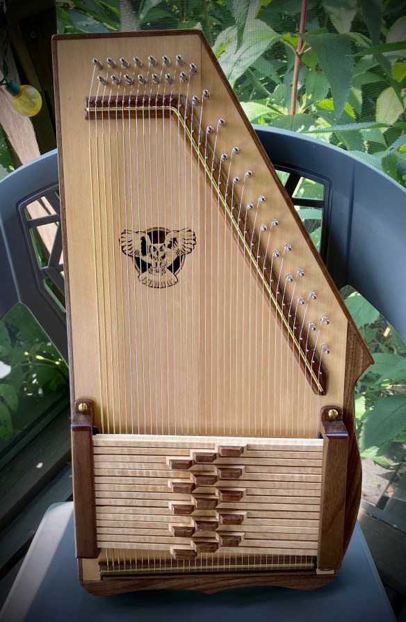 In a popular fictional world of wizards, important communications are transmitted via owls. I don’t know if an owl could bear an autoharp aloft and I am certainly not a wizard, but an autoharp musician here in Ohio has asked that an owl adorn her new instrument.