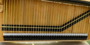 On the reverse side of the tuning strip is red felt. It prevents the wooden strip from scratching the soundboard and doubles as a convenient tool to remove dust under the strings.