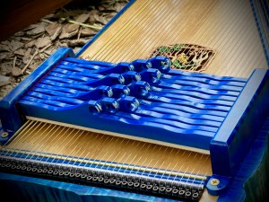 Most of my builds have been set up for playing in the area above the chord bars with the high treble strings unobstructed by the chord bar covers. This chord set is positioned closer to the tuning pins to permit play below the chord bars at the anchor end. Many of the old OS A models were arranged this way until playing the instrument upright became common and the bar set was moved south by their owners or the factories. This instrument is designed to be played on the musician’s lap with the left hand at the chords and the right hand playing near the anchor bridge.