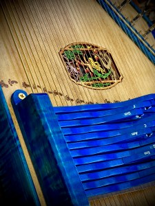 Structurally, this A style autoharp is built with a one piece laminated pinblock frame and a 1/4″ thick laminated birch back. Lately, I have been routing away unnecessary areas inside the frame to increase the interior volume. This, along with some tuned bracing, improves tone and volume.